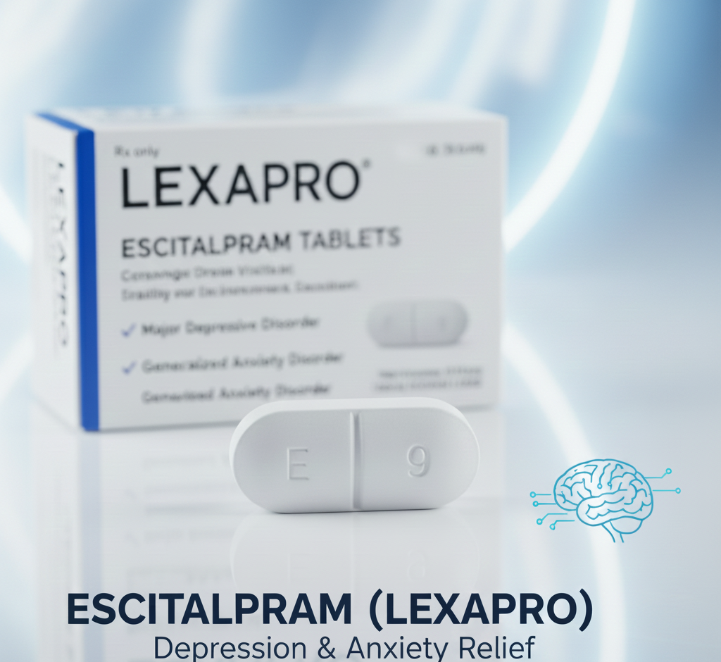 Escitalopram, commonly known by its brand name Lexapro, is a normal medication used to treat depression and generalized anxiety. Doctors suggested it because it helps balance your mood and ease constant issues & worries. It relates to a group of medicines called SSRIs (Selective Serotonin Reuptake Inhibitors). In simple words, SSRIs help your brain hold on to more serotonin, the chemical that helps to maintain mood, sleep, appetite, and emotional stability. When the brain has more serotonin available, people commonly start to feel calmer, more stable, and more like themselves again. Escitalopram does this by slowing down the brain’s natural process of “reabsorbing” serotonin. With the passage of time, this boost helps lift depression and reduce anxiety symptoms.